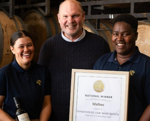 Vergenoegd Löw’s Merlot 2023 won a best-in-class trophy at the Global Fine Wine Challenge