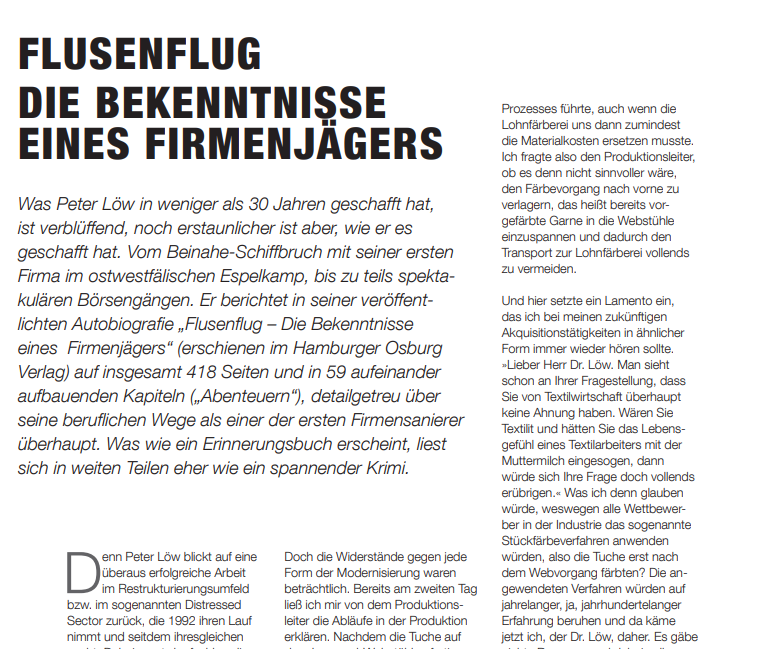 http://ehp.peterloew.eu/wp-content/uploads/2021/06/Interview_Prof.-Dr.-Dr.-Peter-Loew_Flusenflug__Netcoo_04.21-2.pdf Was Peter Löw in weniger als 30 Jahren geschafft hat, ist verblüffend, noch erstaunlicher ist aber, wie er es geschafft hat.